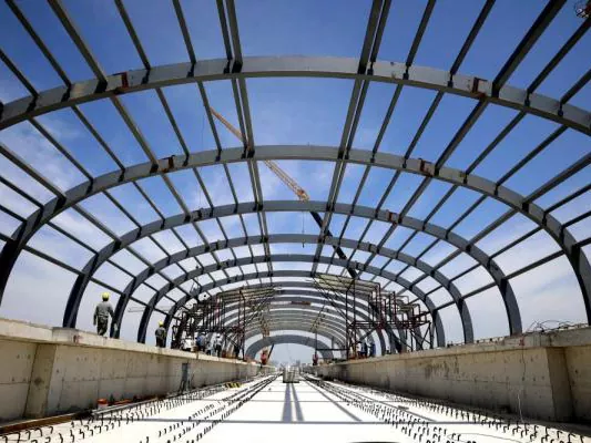 • Kevyt ja korkea kuormituskyky: Teräksen ylivoimainen kuormituskyky ja kevyt luonne mahdollistavat suurten välilyöntien luomisen ilman pylväitä, muodostaen avoimen visuaalisen käytävän odotussaliin. Tämä ei vain vastaa suuren matkustajavirran tarpeita, vaan myös tarjoaa rakennuksen modernilla ja läpinäkyvällä estetiikalla.
